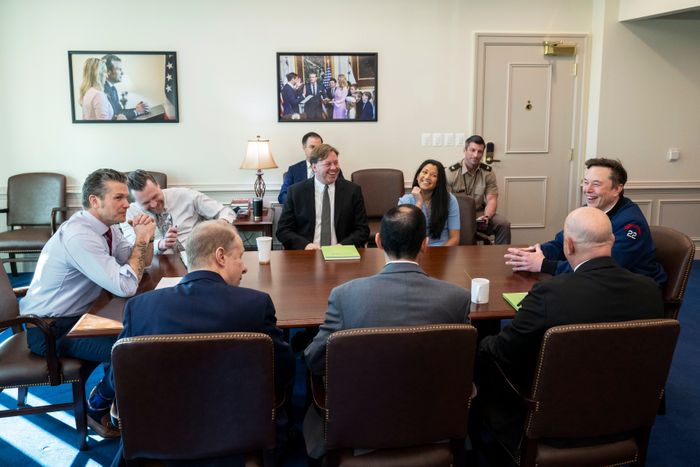 The leaks were damaging Hegseth with the only person who mattered. “What the fuck is Elon doing there?” Trump reportedly asked of the leaked Musk briefing, which was quickly canceled. Who was talking to the press, scoring little hits against him day after day? Was it a Biden political appointee? The “deep state”? Or one of his closest allies, committed to what one source called “some weird policy theology, the New Right”? “I’ll hook you up to a fucking polygraph!” Hegseth said to Admiral Christopher Grady, an exchange we learned about in the pages of The Wall Street Journal because the Pentagon failed to contain leaks about the leak investigation itself.