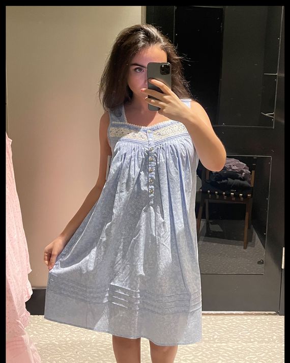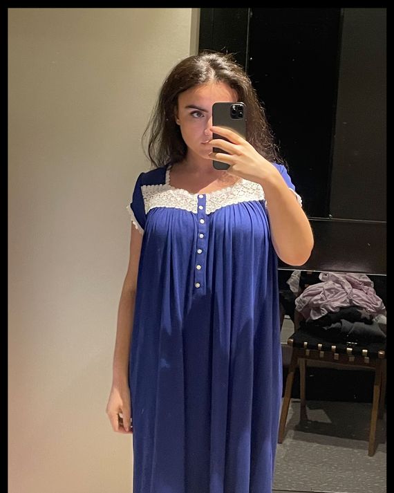 This little blue number makes me feel like a doll in the best way. The gown is traditional in its thick cotton fabric and pleating, but also incorporates playful details in the floral trim, lace cutouts, and flower-shaped buttons. It’s also the one I could most picture my grandmother wearing in 2007, and considering that’s literally what I’m looking for, we have a winner! Just one downside to note: It’s hard to put on and take off without undoing the buttons, so I wouldn’t recommend it for anyone with limited mobility. It’s also not particularly soft, so I’d prefer it for lounging (by the looks of it, with Nicole Kidman in Nantucket) instead of sleeping. After all that hunting, I was pleasantly surprised when I texted my grandmother a photo of this one. She replied: “I think I have that nightgown.”
