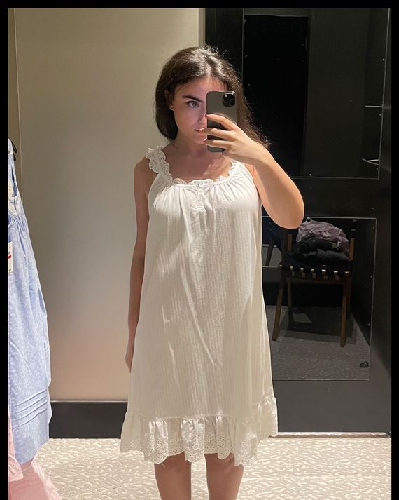 All of my grandmother’s nightgowns were purchased via catalogue, which didn’t help my hunt. (“I’m the catalogue queen,” she tells me, a Gen Z-er who shops in person and online and has no experience wearing high-end pajamas.) What exactly did I have in mind? My ideal nightgown was a cheeky, romantic one that was delicate yet comfortable. I wanted it to have a vintage vibe that was somehow still youthful so I didn’t look like I was playing dress-up. I also wanted a garment with personality — something playful. It’s a lot easier to tell you what I was not looking for: a silky slip, anything stuffy, anything too modern or lingerie (at least from the point of view of anyone born post-1950).